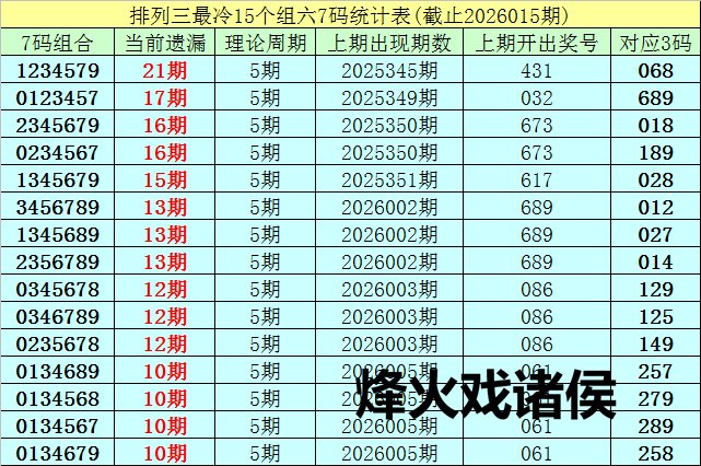 (2)在摆设三第2026015期奖号中,最冷的7码组六遗漏21期,在这21期奖号中,组六号码开出14期,出现概率为67%,半顺组合开出8期,不含全顺组合,开出概率为38%;杂六组合开出6期,开出概率为29%。