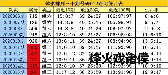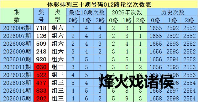 开奖回归:陈列三第2026015期奖号为:202,号码012路比为1:0:2。